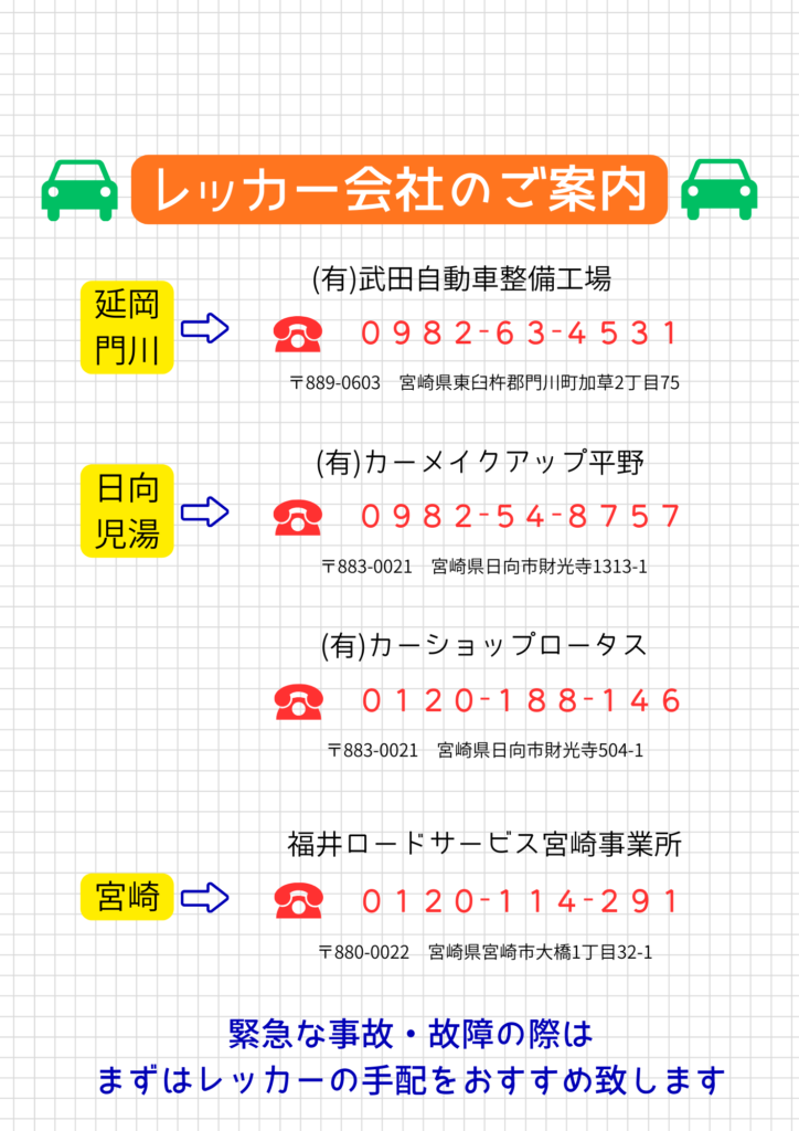 下記のレッカー会社へご連絡頂きますようお願い致します。